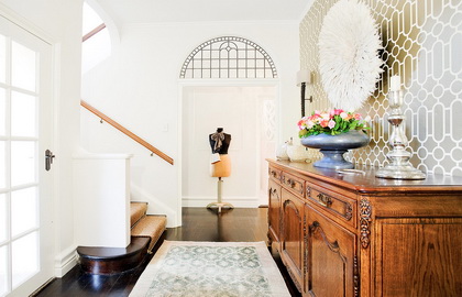 3、门口最好安排一个放杂物的柜子,可以放在鞋柜的上面。把常用的东西,如伞,包,剪刀,零钱,常吃的药等等放在那里,这样就很方便了。